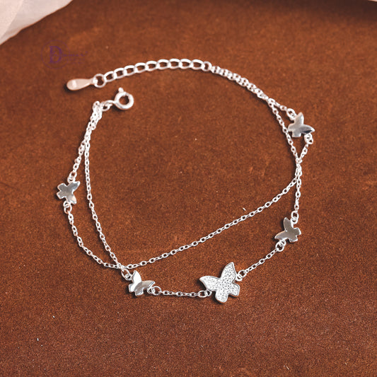 Lắc Tay Bạc 2 Dây Bướm Xuân Đính Đá - Sparkling Butterfly Layer Chain Sterling Bracelet DVT031