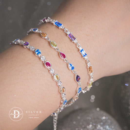 Lắc Tay Premium Dãy Đá Đủ Màu Rainbow Stone - Colorful Stones Silver Bracelet