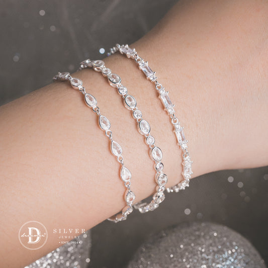Lắc Tay Premium Dãy Đá MàuTrắng Cubic Zirconia Stones Silver Bracelet