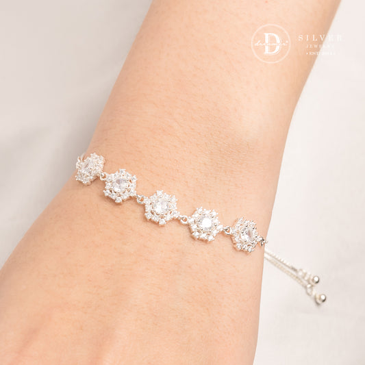 Lắc Tay Bạc Dây Rút Freesize Hoa Tuyết Snowflake 1238VTH