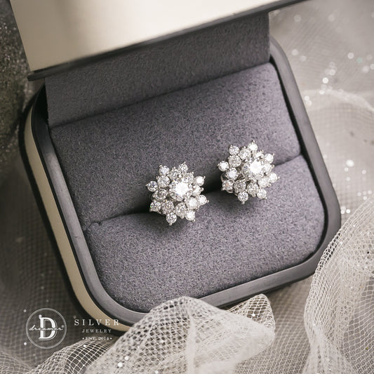Bông Tai Bạc 950 Đá Moissanite Kiểu Hoa Tuyết - Viên Chủ 4li - Snowflake Moissanite Premium Silver Earrings