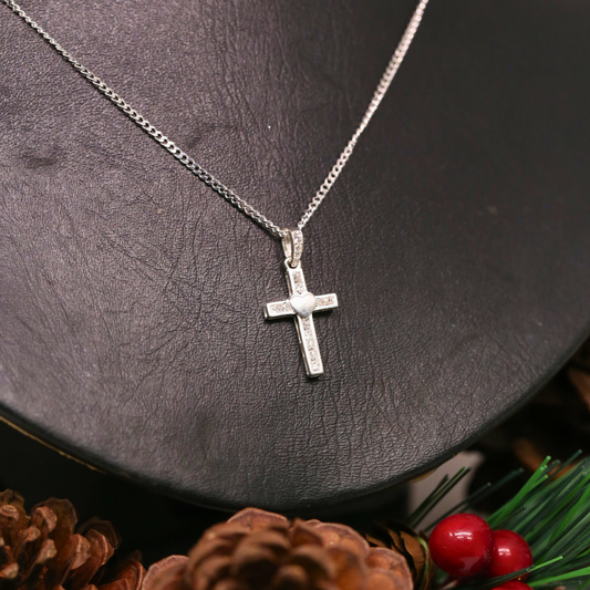 Dây Chuyền Thánh Giá & Trái Tim - Sparkling Cross Silver Pendant Necklace