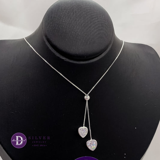 Dây Chuyền Trái Tim Kiểu 2 Dây Layer Sparkling Heart & Little Heart Silver Necklace 1108DCH