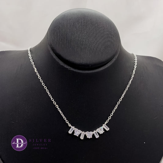 Dây Chuyền Đá Trái Tim và Đá Baguette Thanh Lịch - Elegant Heart Stones Necklace Sterling Silver 1217DCH