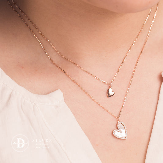 Dây Chuyền Trái Tim Xà Cừ Đính Đá 2 Dây - Rose Gold Heart Silver Necklace 1193DCH