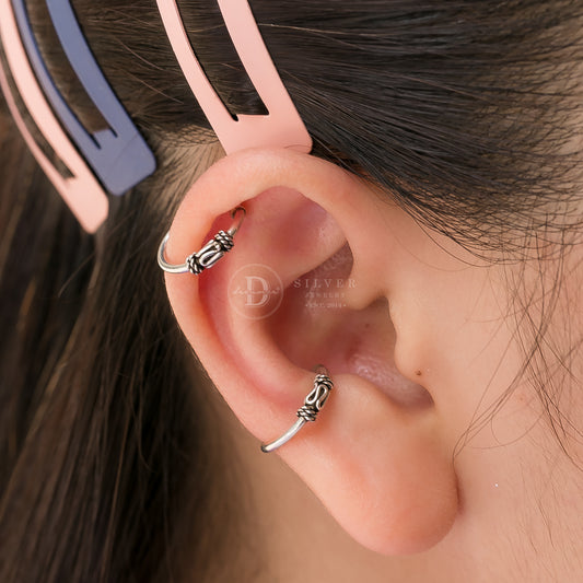 Earcuff Khoen Tròn Nhỏ Oxy Hoá Đen Cá Tính - Bông Tai Kẹp Vành Bạc 925 - 1675EC