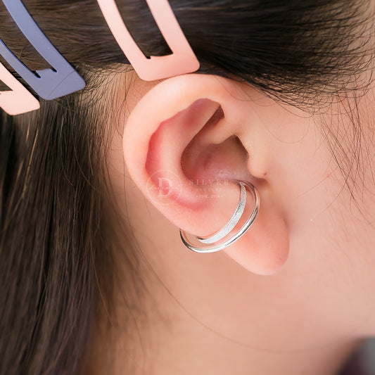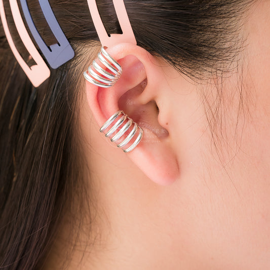 Earcuff Bản Unisex 5 Lines - Bông Tai Kẹp Vành Bạc 925