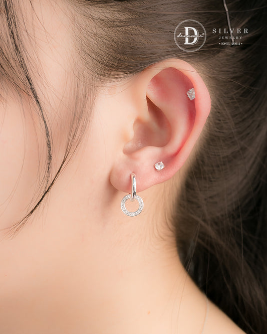 Bông Tai Khoen Tròn Đính Đá - Sparkling Halo Sterling Silver Hoops Earrings - 3256BTK