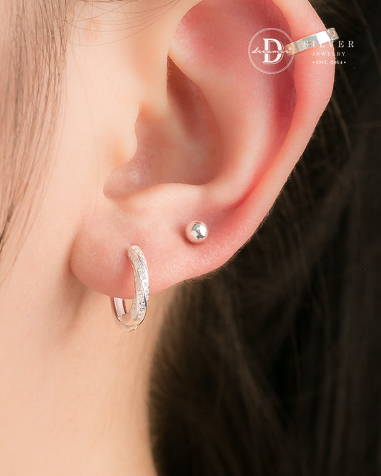 Bông Tai Khoen Bản Xoắn Đính Đá - Sparkling Twist Band Silver Hoops Earrings - 3255BTK