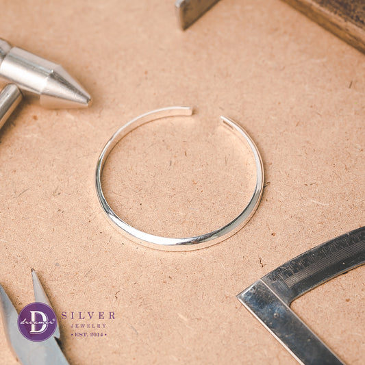 Kiềng Basic Bản Tròn Trơn Đặc Bạc 950 - Vòng Kiềng Bạc Unisex - Basic Handmade Bangle