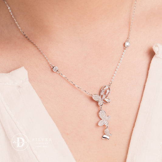 Dây Chuyền 3 Cánh Bướm Đính Đá - Premium 3 Butterflies Silver Necklace 1188DCH