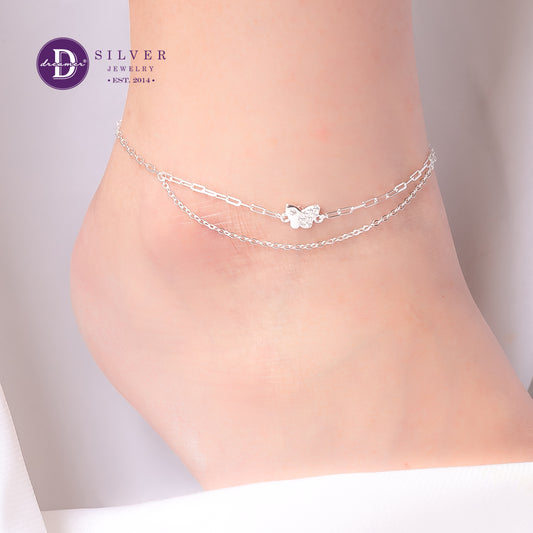 Lắc Chân Bướm Kiểu Xích 2 Dây Bạc 925 - Butterfly Silver Anklet Sterling Silver 545LCH