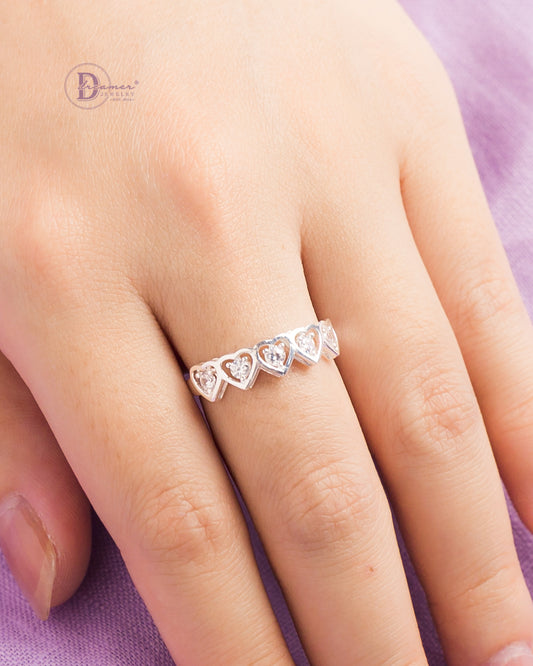 Nhẫn 5 Trái Tim 1 Viên Đá Giữa - 5 Heart Silver Ring 2759NH