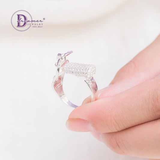 Nhẫn Trái Tim Line Đá Chéo - Heart Silver Ring 2312NH