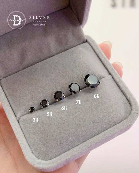 Bông Tai Đá Đen Size 3li Đến 8li - Bạc 925 - White Cubic Zirconia Stud Earrings, Sterling Silver 2550BTH