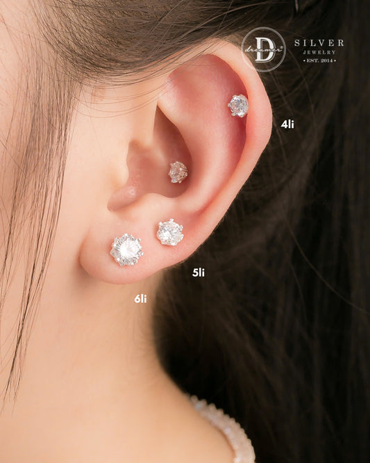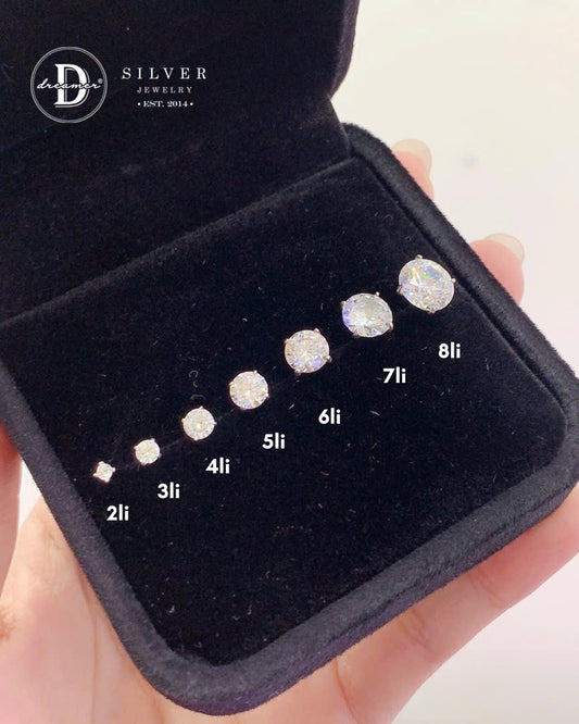 Bông Tai Đá Trắng Đủ Size 2li Đến 8li - Bạc 925 - White Cubic Zirconia Stud Earrings, Sterling Silver