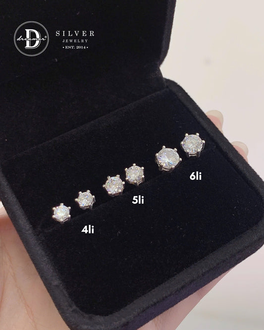 Bông Tai Đá Trắng 6 Chấu Đủ Size 3li Đến 6li - Bạc 925 - White Cubic Zirconia Stud Earrings, Sterling Silver 2404BTH