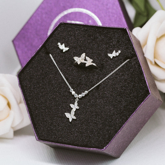 Bộ Trang Sức Bạc Cao Cấp 925 🦋 Bộ Trang Sức Bướm Đính đá