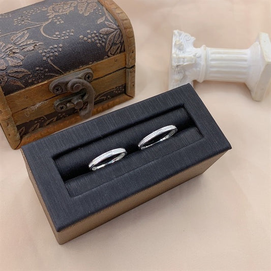 Nhẫn Đôi 1 Viên Đá 1/2 Bản Trơn 1/2 Bản 2 Line - Couple Rings N004