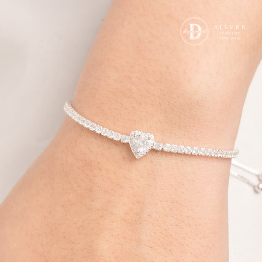 Lắc Tay Bạc Dây Rút Freesize Đá Trái Tim - Princess White Heart Stone Adjustable Bracelet 1184VTH