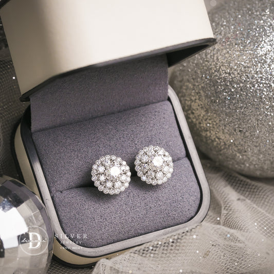 Bông Tai Bạc 950 Đá Moissanite 5li Halo Button Viền Đá Tấm - Circle Halo Moissanite Premium Silver Earrings