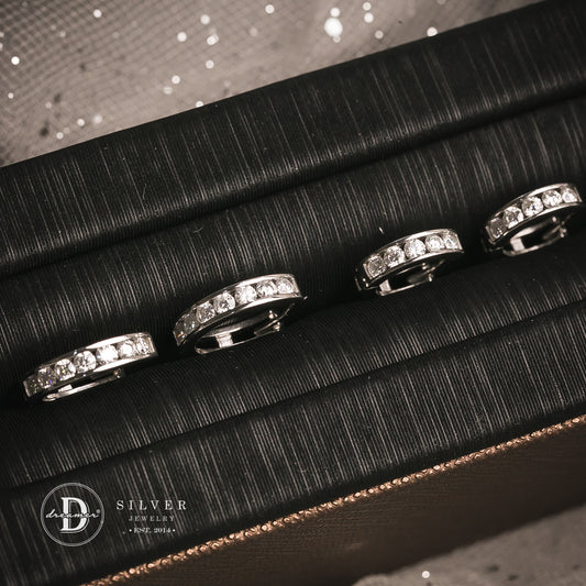 Bông Tai Khoen 1 Line Đá Moissanite 2li - Moissanite Stone Line Silver Hoops