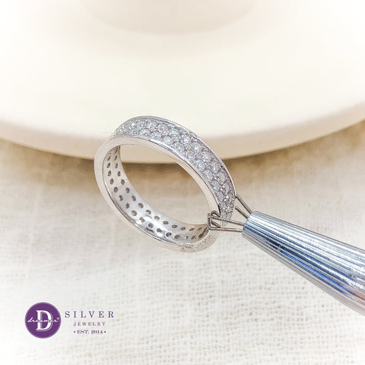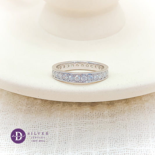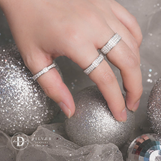 Nhẫn Bạc 950 2 Line Đá Moissanite 1.5li - Bản 4mm - Eternity Moissanite Diamond Silver Ring (Copy)