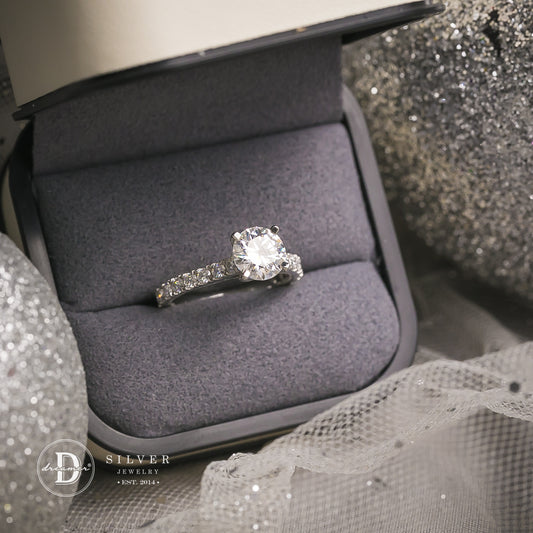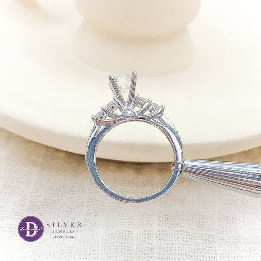 Nhẫn Bạc 950 Đá Moissanite 6li 4 Chấu Đai 4 Viên Đá Moi 3li - Moissanite Diamond Silver Ring