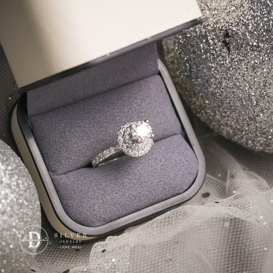Nhẫn Bạc 950 Đá Moissanite 6li & 6.3li Chop Halo Tròn - Halo Moissanite Diamond Silver Ring