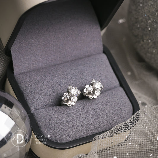 Bông Tai Bạc 950 Đá Moissanite Kiểu Hoa Tuyết - Viên Chủ 4li - Snowflake Moissanite Premium Silver Earrings
