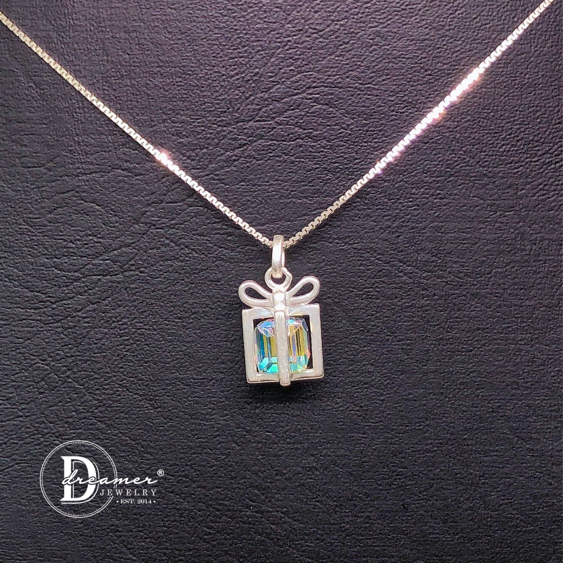 Dây Chuyền Hộp Quà Đính Đá Xinh Xắn - Sparkling Gift Box Pendant Silver Necklace