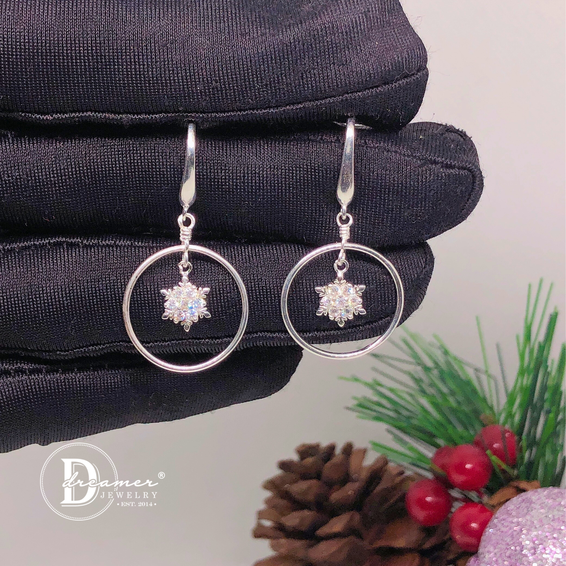 Bông Tai Hoa Tuyết Tòn Ten Khoen Tròn Bạc 925 - Snowflake Silver Earrings - 698BTH