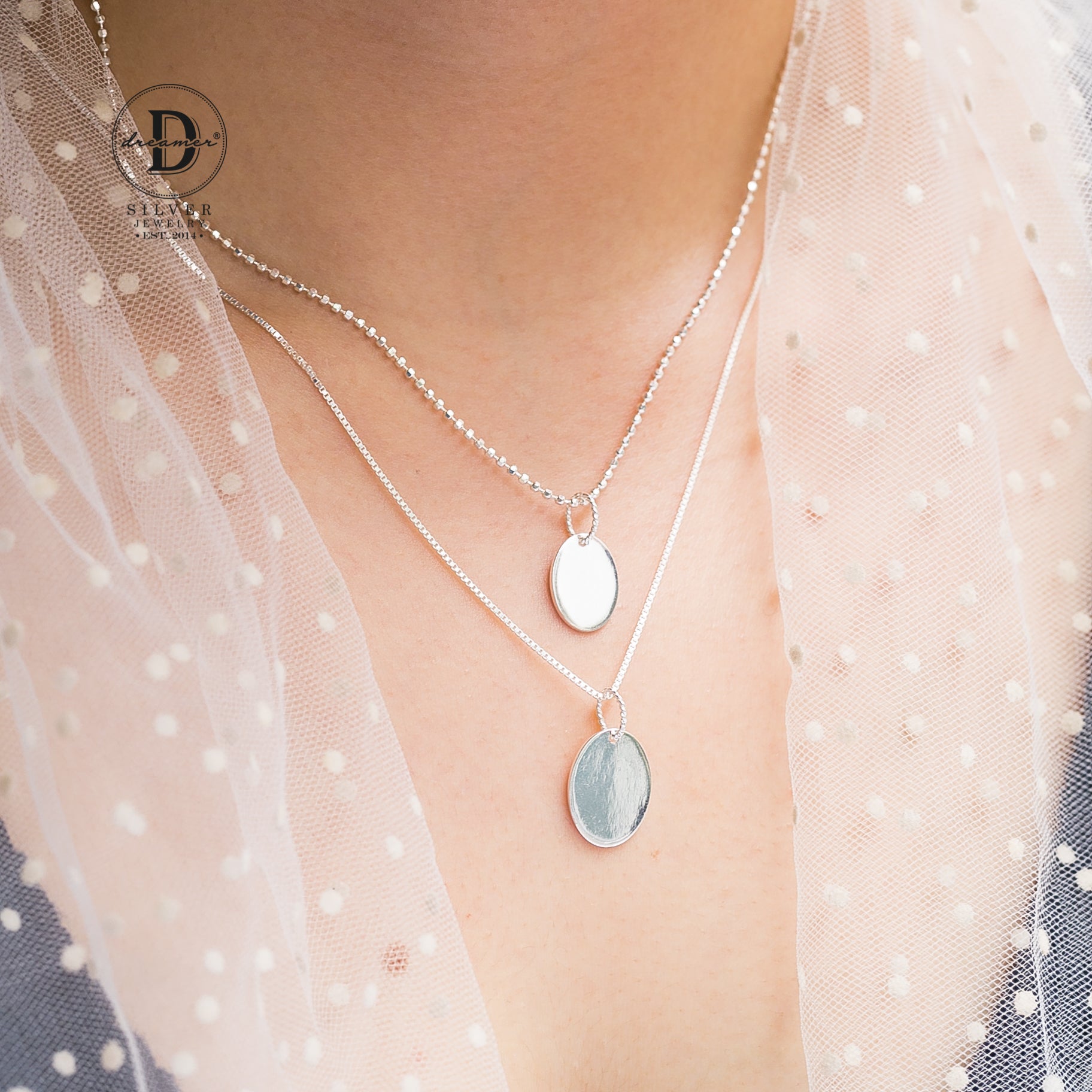 Mặt Dây Chuyền Oval Trơn Khắc Chữ
