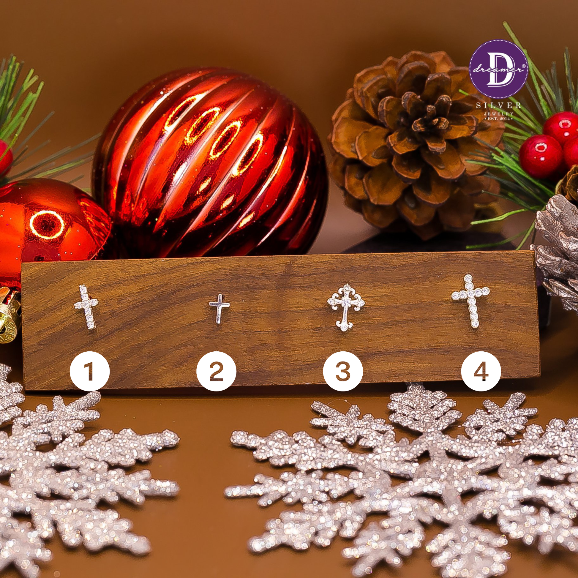 Sterling Silver Cross Stud Earrings - Bông Tai Thánh Giá - Quà Giáng Sinh