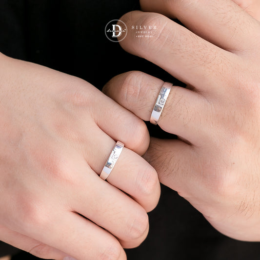 Nhẫn Cặp Square Maze & Đá CZ 2li - Sterling Silver Couple Rings 2551NH